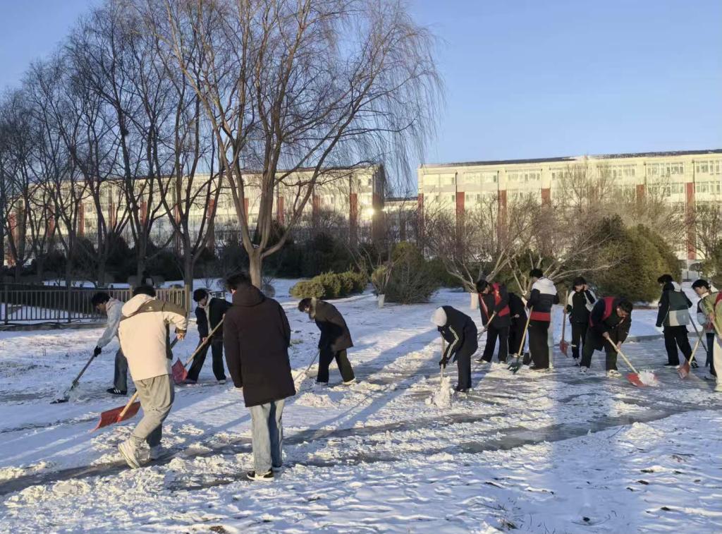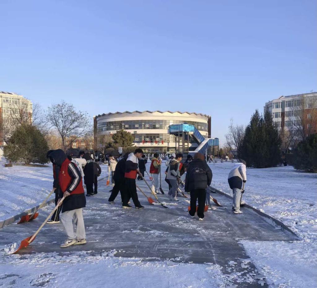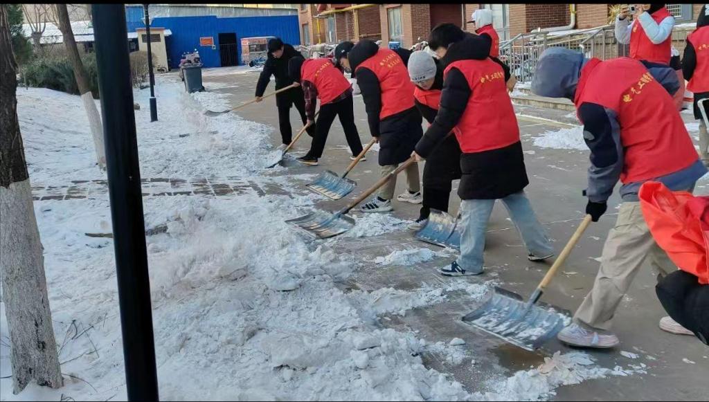 活动中,志愿者们不畏严寒,手持工具清理校园主要道路与公共场所的积雪积冰,保障师生出行安全。此外,学院将“大学生社区建功行动”落到实处,主动对接结对社区与街道,参与扫雪任务,在实践中展现青年担当。